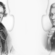 Hangversenyünk másik szerzője, Mozart egy fél évszáaddal korábban szintén tanulmányozta Bach művészetét, mely rá is termékenyítőleg hatott. A c-moll mise keletkezéséről tudjuk, hogy Mozart házasságáért hálából fogadalmat tett, hogy misét komponál. Korábbi miséitől eltérően nagyszabású “kantáta-misét” tervezett. Még 1782 júliusában fogott hozzá a mű megírásához, és a következő év májusáig dolgozott rajta, de nem készült el vele. A mise végül töredékes maradt: a Kyrién és Glorián kívül a Sanctus és Benedictus készült el, a Credóból csupán az első két tétel (“Credo in unum Deum” és “Et incarnatus”), az Agnus Deiből pedig semmi. A mű keletkezése idején Mozart figyelme a barokk szerzők felé fordult, több Bach-fúgát lemásolt, komponált egy szvitet és számos fúgát is. A c-moll mise Mozart első nagyobb kompozíciója, amelyen nyomot hagyott a Bach és Händel művészetével való megismerkedés. Részben e találkozásnak tulajdonítható Mozart megnövekedett érdeklődése az ellenpont iránt, de talán ennél is fontosabbnak tűnik, hogy egyfajta archaizáló hangvétel jelenik meg Mozart zeneszerzői palettáján.